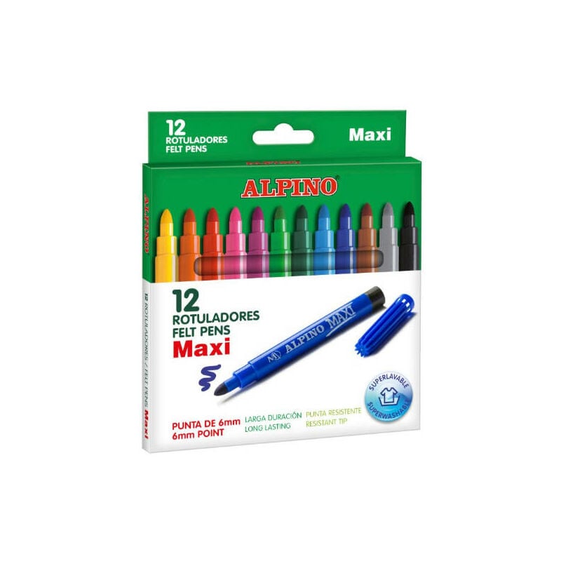 Descrizione del prodotto Set di 12 maxi pennarelli alpino di alta qualità. Dal design moderno ed elegante. Ideale per la vostra collezione da ufficio. Prodotto di alta qualità del marchio Alpino. Contenuto della scatola Unità contenute: 1 Pennarelli dai colori vivaci e brillanti: 12 pennarelli dai colori vivaci, ideali per disegnare o colorare. La punta spessa 6 mm è molto resistente all'usura. Ideali per l'uso scolastico. Pennarelli super lavabili: inchiostro super lavabile per la pelle e la maggior parte delle superfici. L'inchiostro è a base d'acqua e non è tossico. Marchio Alpino: godetevi questi pennarelli Alpino, un marchio che ha riempito le nostre vite con colori e prodotti di qualità.