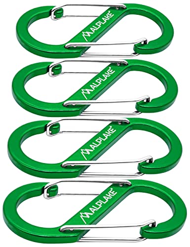 ALPLAKE ® - 4 moschettoni in materiale a forma di S, 88 x 40 mm, colore: verde