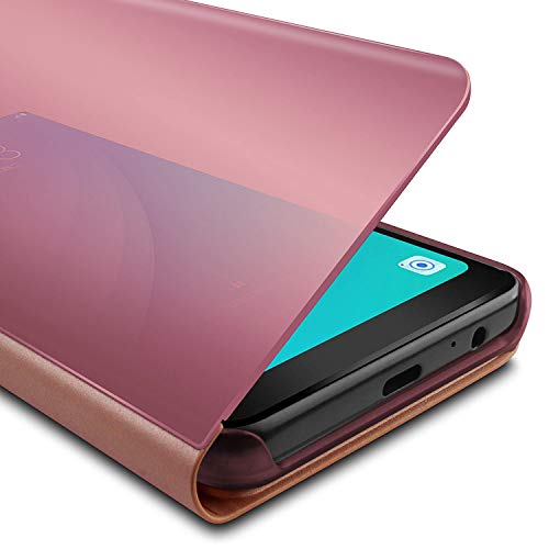 Alsoar Compatibile/Sostituzione per Huawei P30 Lite Cover Clear View Specchio Standing Cover Ultra Slim Mirror Flip Custodia Bookstyle Wallet Portafoglio Case Elegante Slim Flip Case (Rosa Viola)