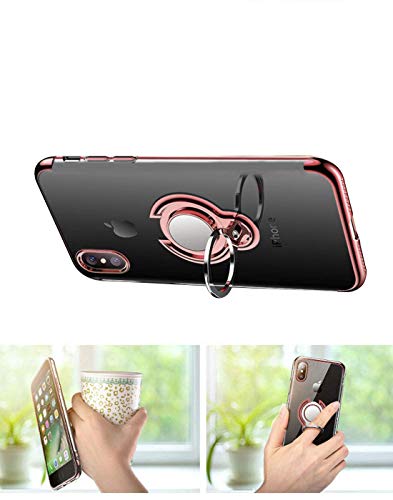 Alsoar Sottile Cover Compatibile per iPhone X,Trasparente Silicone Custodia per iPhone XS con Girevole Fit TPU Morbido Anello,con Supporto Adatto per Supporti Magnetici da Auto (Oro rosa)