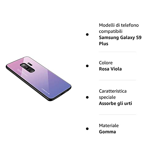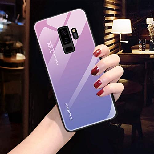 Alsoar Ultra Sottile Custodia per cellulare per Galaxy S9 Plus Custodia Protettiva Gradient Vetro Temperato Cornice in Silicone Morbido Antiurti Antigraffio Vogue Cover Samsung S9 Plus (Rosa Viola)
