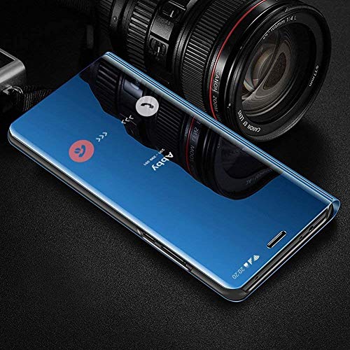 Alsoar Compatible/Sostituzione per Xiaomi Mi 9 SE Cover Clear View Specchio Standing Xiaomi Mi 9 SE Case Ultra Slim Mirror Flip Custodia Bookstyle Wallet Portafoglio Custodia Slim Flip Case (Blu)