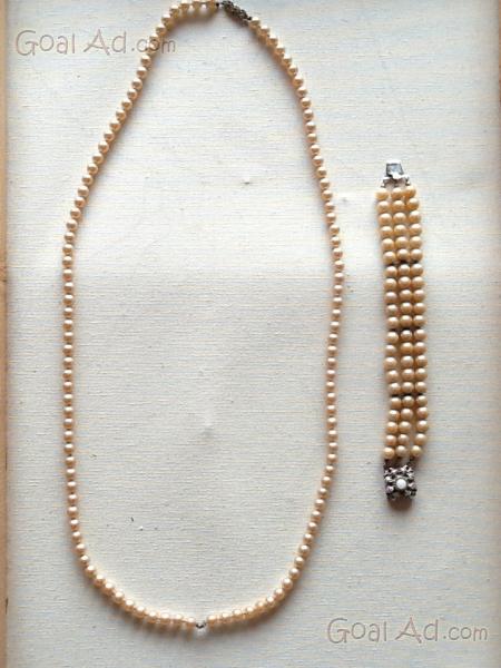 Set Collana piu' Braccialetto di Alta Bigiotteria Italiana ( usato in ottimo stato di conservazione,come da foto ),degli anni "60 in Perle di taglio medio,articoli lavorati con tanta passione e maestria a mano,a differenza dei tanto blasonati,pubblicizzati e costosissimi marchi attuali,che poco hanno di artigianale e manualita',molto di industriale.per intenditori,amatori e per rappresentazioni sceniche di quel periodo tanto ricco di genialita' e originalita