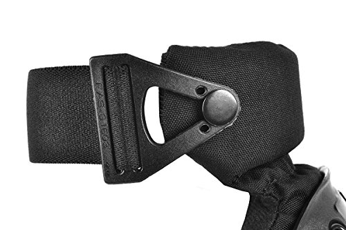 La striscia in gomma antiscivolo sul retro tiene le ginocchiere comodamente in posizione.