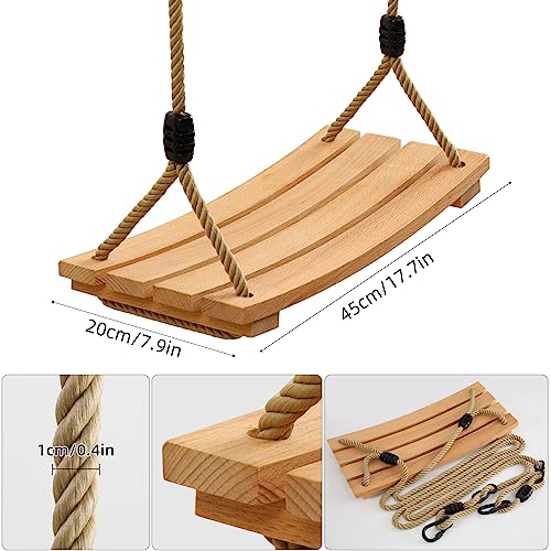Altalena Legno da Giardino per Ragazzo e Bimba,Altalena Adulti da Interno e Externo, Altalena Legno per Ragazzo e Bimba, Seggiolino Altalena Antiscivolo con Corda Regolabile e 2 Moschettoni