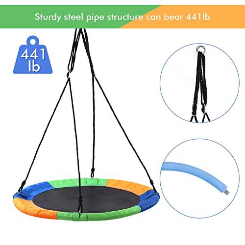 Altalena rotonda grande per bambino, altalena nido d'uccello diametro 100 cm da appendere regolabile per bambino giardino esterno adulto, peso massimo 200 kg