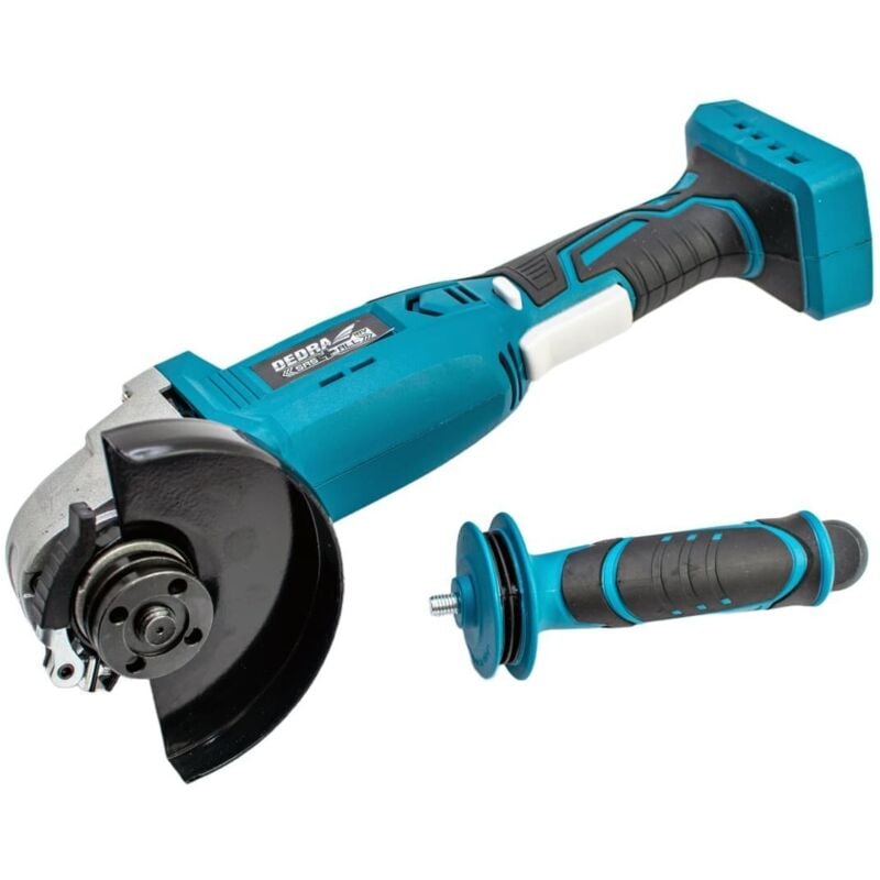 Dati tecnici: Codice articolo DED7051 Voltaggio 18 V Velocità 8500 Diametro foro disco 22,2 mm Diametro disco 125 mm Albero filettato M14 Chiave cambio disco alloggiata nell'impugnatura laterale Interruttore di sicurezza Maniglia gommata Regolazione rapida e senza attrezzi della posizione del coperchio del disco 2 montaggio posizioni dell'impugnatura laterale La smerigliatrice angolare a batteria DED7051 è uno strumento per tagliare e levigare. Il motore smerigliatore raggiunge una velocità di 8.500 giri al minuto e funziona con dischi da 125 mm e 115 mm. La smerigliatrice è dotata di un interruttore di sicurezza che interromperà l'alimentazione se il dispositivo esercita una pressione eccessiva sul materiale in lavorazione, cosa che potrebbe causare danni o surriscaldamento del dispositivo. Un sistema di montaggio rapido del disco, una maniglia laterale a due posizioni e un'impugnatura gommata migliorano significativamente il comfort di utilizzo del dispositivo. La chiave per la