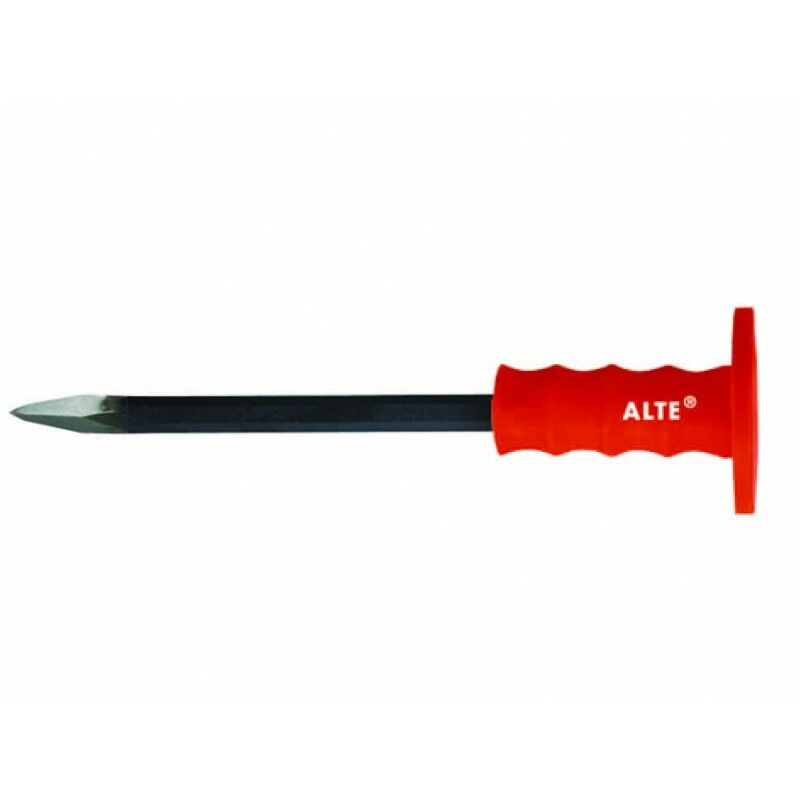 SCALPELLO DA MURATORE A PUNTA CON PARAMANO - ø mm.16x350 In acciao temperato verniciato nero completo di paramano.