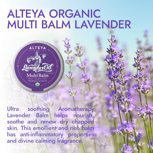 Alteya Organic Balsamo Multi-uso di Lavanda Bulgara 90gr - USDA certificato organico puro crema per corpo, mani e piedi, basato sulle prorpietб terapeutiche dell'olio essenziale della lavanda