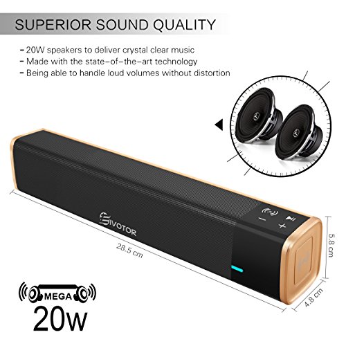 Altoparlante Bluetooth 4.1, EIVOTOR Speaker Stereo Wireless 20W, Altoparlante Portatile Senza Fili con Microfono Incorporato, Subwoofer con Bassi Potenti per Tablet/PC/Netbook/iPhone/Samsung/Android e Dispositivo Bluetooth Oro