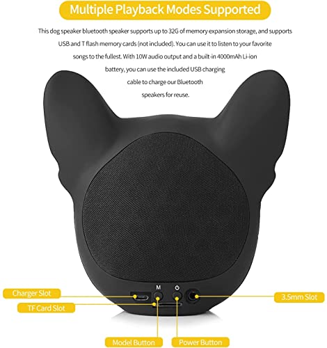 Altoparlante Bluetooth Testa di Cane, Altoparlante Senza Fili Bulldog Francese, Lettore Musicale Stereo Portatile a Forma di Cane Altoparlante Senza Fili Bluetooth Grande Memoria 32G, Regalo Creato