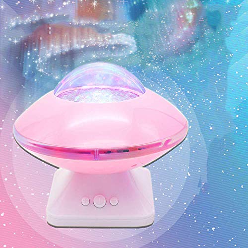 LW UFO Altoparlante Proiettore Lampada Aurora Boreale Stelle Luce Notturna Bambini Dimmerabile Multifunzione Cielo Proiezione Notte Lampada DIY Rotante Nachtside Lampada,Pink