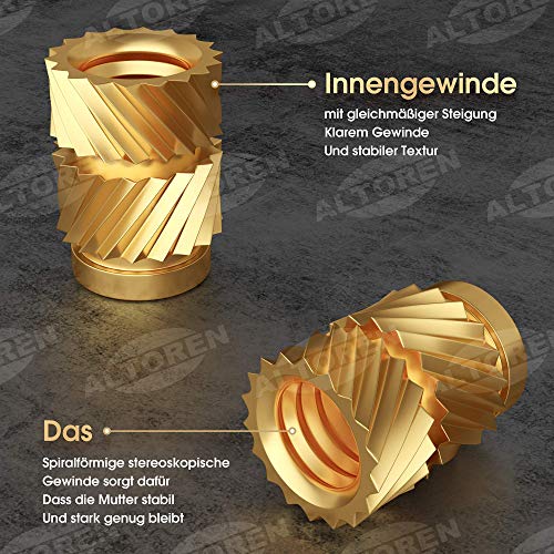 【Hochwertigem Messing】Einbettungsmuttern mit Innengewinde aus Messing sind aus hochwertigem Messing hergestellt, das eine hohe Härte, Korrosionsbeständigkeit, Haltbarkeit und Stabilität aufweist.