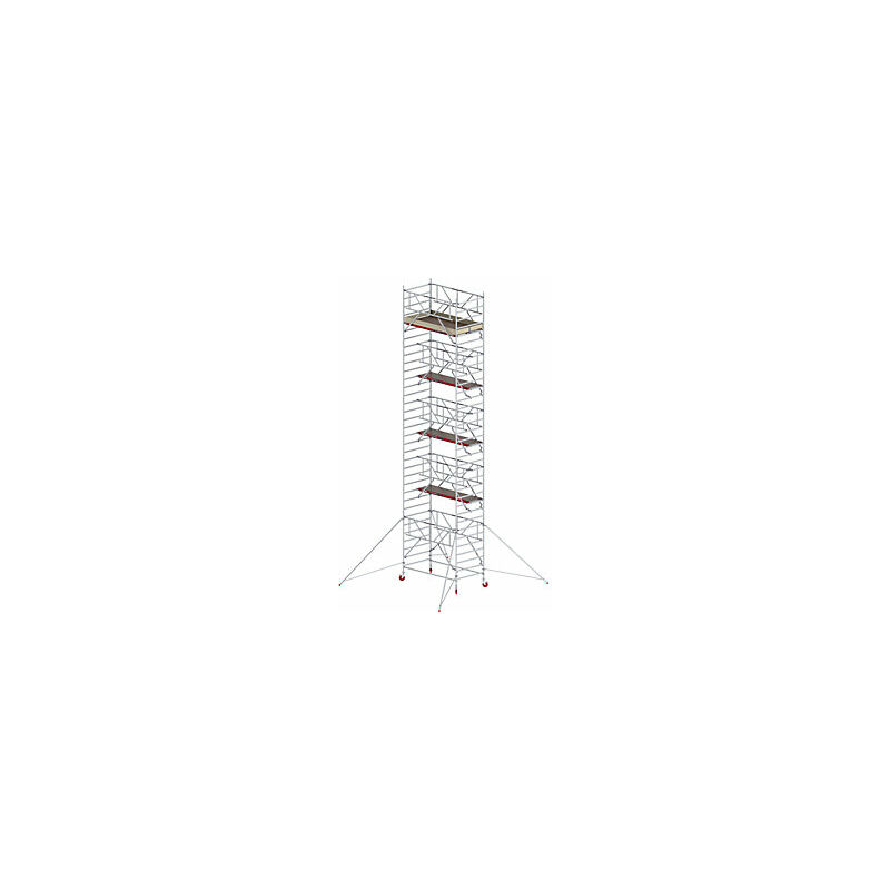Trabattello mobile RS TOWER 42 largo con Safe-Quick®, piattaforma in legno, lunghezza 1,85 m, altezza di lavoro 11,20 m. Fornitura = smontato. Larghezza piattaforma = 1350 mm. Altezza piattaforma = 9200 mm. Lunghezza piattaforma = 1850 mm. Altezza di lavoro = 11.2 m. Altezza di salita = 9200 mm. Altezza trabattello = 10.2 m. Peso = 285 kg. Materiale = alluminio, legno. Portata = 200 - 750 kg. Diametro ruote = 200 mm. Larghezza trabattello = 1.35 m. Lunghezza trabattello = 1.9 m. Diametro tubo = 50 mm. Norma = EN 1004 classe 3. Tipo di prodotto = trabattelli mobili. Largo trabattello mobile con grande superficie di lavoro. Sicuro e stabile - con rotelle pivottanti con fermo doppio. Robusta protezione completa con Safe-Quick® GuardRail. Per l'impiego in ambienti interni ed esterni. Conformi alla nuova TRBS 2121-1. L'RS TOWER 42 è un trabattello mobile completo. Perfetto per ogni professionista. I giunti a incastro fra le traverse rendono ben stabile l'RS TOWER 42. Con questo trabattello