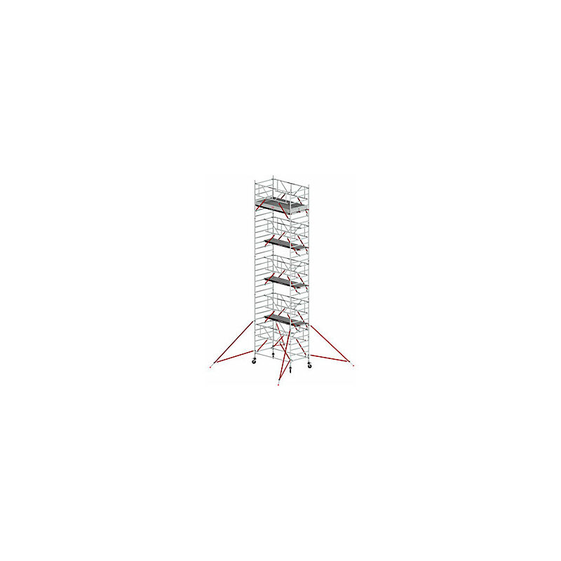 Trabattello mobile RS TOWER 52 largo, con piattaforma in Fiber-Deck®, lunghezza 2,45 m, altezza di lavoro 10,20 m. Fornitura = in parte smontato. Larghezza piattaforma = 1350 mm. Altezza piattaforma = 8200 mm. Lunghezza piattaforma = 2450 mm. Altezza di lavoro = 10.2 m. Altezza di salita = 8200 mm. Altezza trabattello = 9.2 m. Peso = 310.18 kg. Materiale = alluminio, Fiber-Deck®. Portata = 250 - 750 kg. Zavorra per esterni = 180 kg. Diametro ruote = 200 mm. Larghezza trabattello = 1.35 m. Lunghezza trabattello = 2.5 m. Diametro tubo = 50 mm. Norma = EN 1004 classe 3. Tipo di prodotto = trabattelli mobili. Le piattaforme in Fiber-Deck® sono più leggere del 30%. Largo trabattello mobile con grande superficie di lavoro. Montaggio e smontaggio più rapidi con l'innovativo sistema di ganci della piattaforma. Conformi alla nuova TRBS 2121-1. Il sistema del trabattello mobile può essere ampliato con i componenti della serie RS TOWER 5 e può essere combinato con altre applicazioni come ad es.