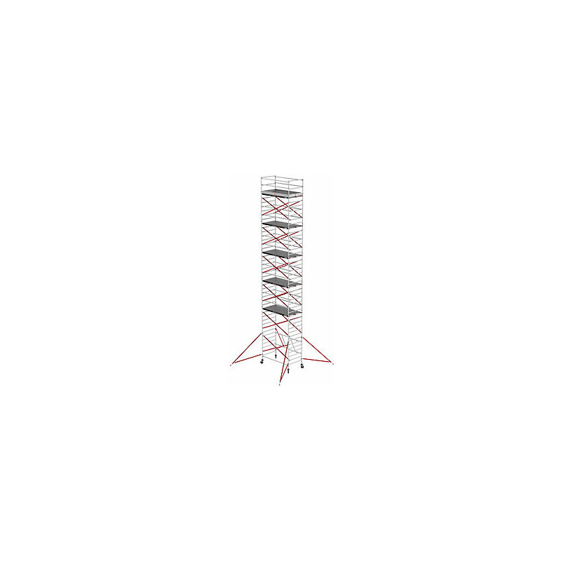 Trabattello mobile RS TOWER 55, piattaforma in Fiber-Deck®, lunghezza 2,45 m, altezza di lavoro 13,80 m. Fornitura = smontato. Larghezza piattaforma = 1350 mm. Altezza piattaforma = 11800 mm. Lunghezza piattaforma = 2450 mm. Altezza di lavoro = 13.8 m. Altezza di salita = 11800 mm. Altezza trabattello = 12.8 m. Peso = 400 kg. Materiale = alluminio, Fiber-Deck®. Portata = 250 - 750 kg. Diametro ruote = 200 mm. Larghezza trabattello = 1.35 m. Lunghezza trabattello = 2.45 m. Diametro tubo = 50 mm. Norma = EN 1004 classe 3. Tipo di prodotto = trabattelli mobili, trabattelli per interni. Salvaspazio - piegabile a metà. Un pratico aiuto - ampliabile fino a un'altezza di lavoro di 13,80 m. Montaggio e smontaggio più rapidi con l'innovativo sistema di ganci della piattaforma. RS TOWER 55 è un pratico trabattello con grande superficie di lavoro adatto per l'uso in interni ed esterni. Serve un'altezza maggiore? Il sistema è ampliabile con i componenti della serie RS TOWER 5, che permettono di