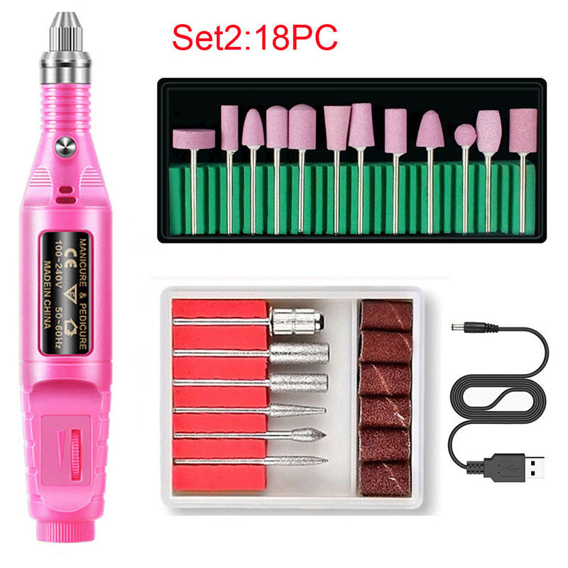 ♥ kit manicure unghie elettrico con 18 mole abrasive per affilatura mano, lucidare, rimuovere vecchie pedicure e nail art. Multi-strumento definitivo. ♥ Sicuro e facile da usare. Uso: è facile cambiare la punta senza attrezzi, basta estrarla e inserirla. Interfaccia USB standard, basta collegare il cavo di alimentazione per iniziare a lavorare. funzionare. ♥Basso calore e vibrazioni: il corpo in lega di alluminio fornisce un'efficiente dissipazione del calore per evitare il surriscaldamento. Meno vibrazioni per una sensazione più fluida durante l'uso. ♥ il chiodo elettrico è realizzato in alluminio e ha la forma di una penna per una presa comoda. È tranquilla, gentile ed estroversa. basse vibrazioni durante la manicure. E puoi goderti un salone di bellezza a portata di mano. a casa o portalo con te nei tuoi viaggi grazie a;