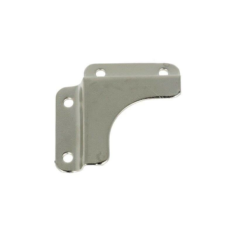 In ferro nichelato spessore max. cristallo: 5 mm. lunghezza 25 mm. larghezza 25 mm. consigliate viti Ø 3 x 16 mm.