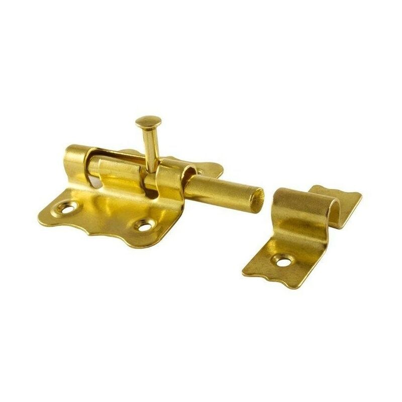 Catenaccio a cannone japan 50 mm. in ferro ottonato in ferro ottonato lunghezza catenaccio 40 mm. altezza 35 mm. lunghezza totale 54 mm. consigliate viti 2,5 x 16 mm.