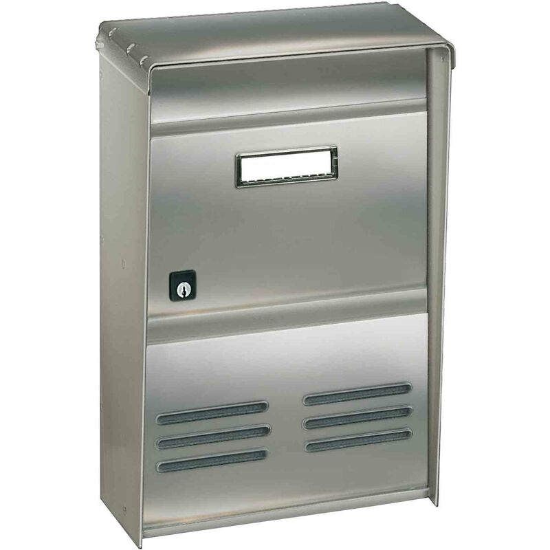 1,0 PZ Di CASSETTA POSTALE ALUBOX DR2E RIVISTA 26X12X37,5 IN Mod. DR2E RIVISTA in acciaio inox 470 LI. Con tetto. Serratura a cilindro. Con 2 chiavi. Dimensioni mm 260x120/90x375h Finitura inox liscio