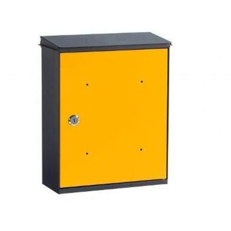 Altezza 35 cm larghezza 26 cm profondità cassetta+placca 12cm prelievo frontale Cassetta postale MIA completa di corpo e placca in lamiera zincata da Esterni, formato rivista, con introduzione dall'alto e sportello con apertura a libro. Cassetta postale di nuova concezione che sfrutta la possibilità di cambiare il look della cassetta senza cambiare tutta la cassetta, ma solo la placca che si applica facilmente sullo sportello con 4 viti (in dotazione).