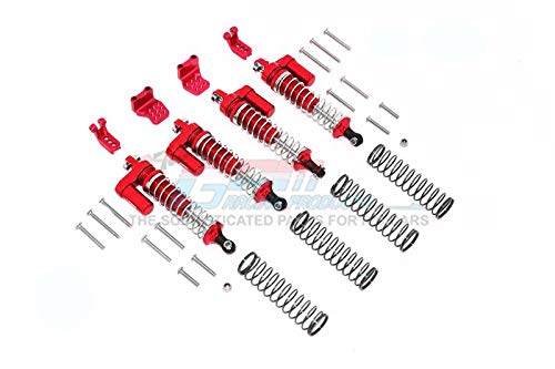 Aluminium L-Shape Piggy Back Spring Dampers 90Mm + Adjustable Damper Mount (Multiple Positioning Holes) for Traxxas TRX-4 Mercedes-Benz G500 / Bronco/Blazer - 16Pc Set Red
