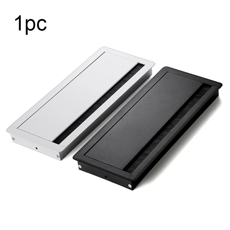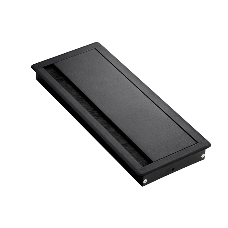 1PC Aluminum Alloy PC Desk Rectangle Wire Cable Grommet Office Table Hole Cover Outlet Port with Black Brush Cable Organizer
