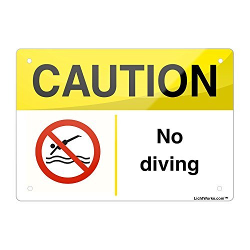 Aluminum metal Sign caution no Diving, 30,5 x 20,3 cm pollici progettato da Wennuna