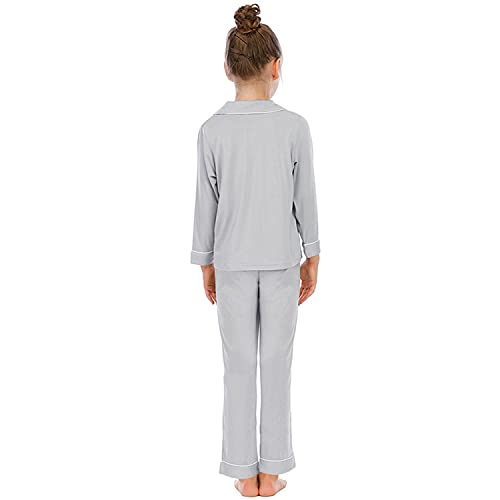 Alunsito Pigiama per Bambini Baby Girl Boy Set a Maniche Lunghe Pjs 2 Pezzi Pigiameria abbottonatura Indumenti da Notte Estate Autunno Camicia da Notte, Grigio Chiaro, 11-12 Anni