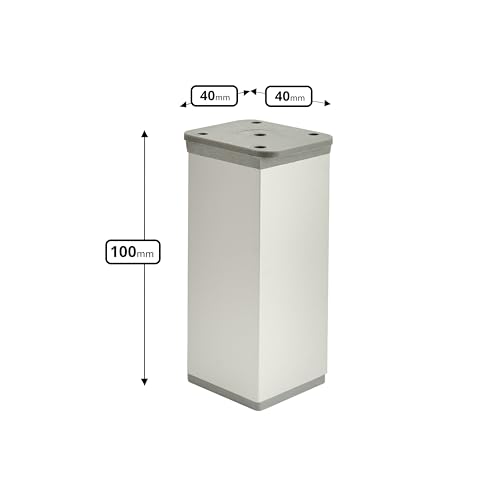 ALUSFERA Piedini Per Mobili - Gambe Per Mobili in Metallo - Piedini Regolabili per Mobili - Accessori di Montaggio Inclusi- In Altezza Set di 8-40 x 40 mm - 100mm Argento