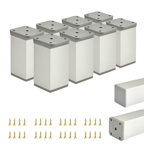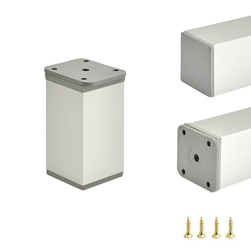 ALUSFERA Piedini Per Mobili - Gambe Per Mobili in Metallo - Piedini Regolabili per Mobili - Accessori di Montaggio Inclusi- In Altezza Set di 8-40 x 40 mm - 80mm Argento