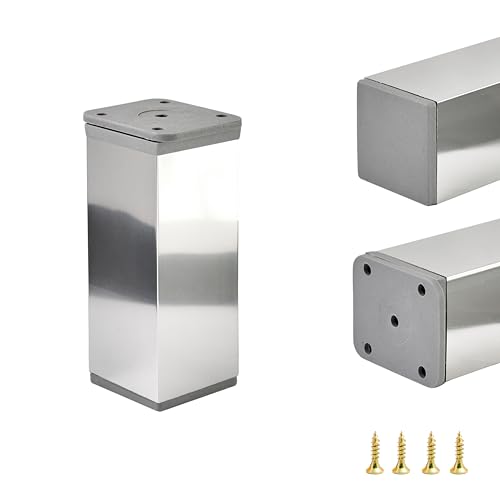 ALUSFERA Piedini per Mobili in Metallo - Piedini Regolabili in Altezza - Gambe per Mobili - Base in Alluminio - Piedi per Mobili 4 pezzi - Piede Regolabile 40x40mm - 100mm Cromo