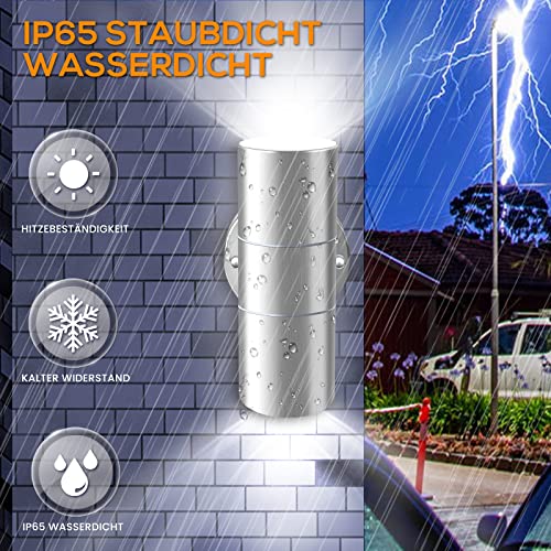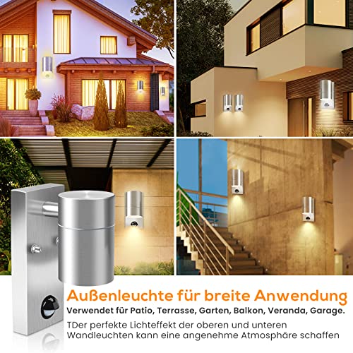 ALUSSO Lampada da parete per esterni in acciaio inossidabile con sensore di movimento PIR IP65 Lampada di sicurezza da giardino con lampadina LED GU10 5W bianco freddo 6000K, argento, confezione da 2