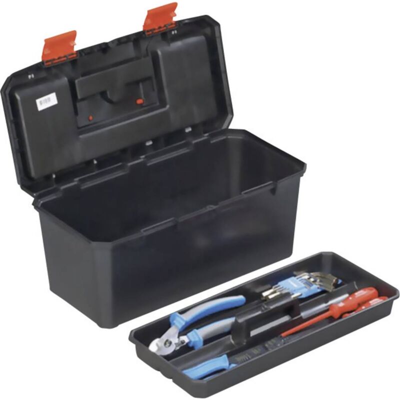 Dettagli tecnici Colore Nero, Arancione Dimensione del prodotto, larghezza 230 mm Dimensione del prodotto, lunghezza 480 mm Dimensioni prodotto Altezza 230 mm Materiale Plastica Numero di inserti 1 Cassetta degli attrezzi Classic 19 Pratica cassetta degli attrezzi che trova diversi impieghi nell'ambito dell'officina. Testo tradotto automaticamente. Punti di forza e dettagli Con organizer e supporto Caratteristiche Scomparto per la minuteria Piano d'appoggio per gli utensili Maniglia di trasporto. Incluso nella consegna null Requisiti di sistema null