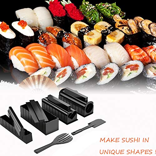 8 forme diverse: il kit per fare sushi viene fornito con 1 forchetta per riso, 1 spatola non appiccicosa e 8 stampi per sushi per creare diverse forme, tra cui triangoli, cuori, rotondi classici, piccoli quadrati, un rettangolo, una forma animale, un semicerchio e settore