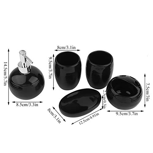 Alvinlite Accessori per Il Bagno Set da 5 Pezzi in Ceramica Minimalista Moderno, Include Bottiglia di lozione Portasapone Portaspazzolino Set da Bagno per Tazza per la Pulizia dei Denti(Nero)