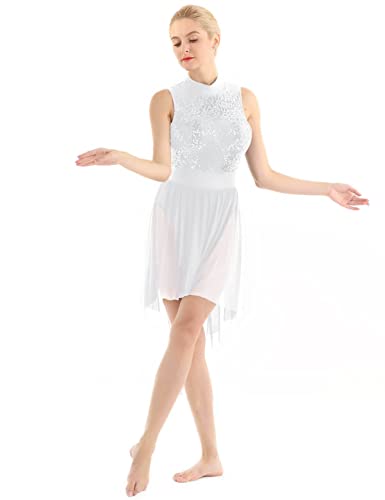 Alvivi Abito da Pattinaggio Artistico Donna con Strass Vestito Danza Classica Balletto Tutu Lungo Leotard Abito da Ballo Latino Ballerina Danza Moderna Jazz Dancewear Bianco XS