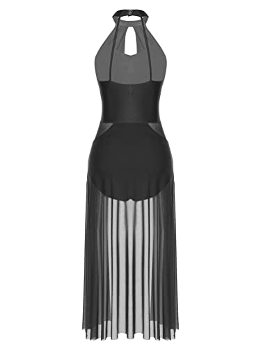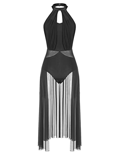 Alvivi Abito da Pattinaggio Artistico Donna con Strass Vestito Danza Classica Balletto Tutu Lungo Leotard Abito da Ballo Latino Ballerina Danza Moderna Jazz Dancewear Nero E L