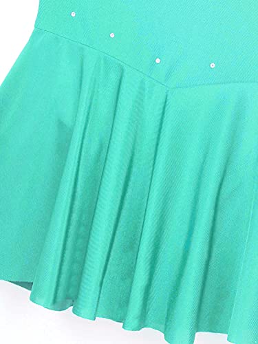 Alvivi Vestito da Pattinaggio Artistico Bambina Leotards Strass Body Danza Classica Abito da Ballo Costumi di Danza Ballerina Samba Rumba Salsa Jazz Danza Moderna Menta Verde 11-12 Anni