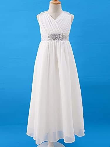Alvivi Vestito Principessa Bambina Nozze Festa Paillettes Tulle Abito Elegante in Chiffon per Compleanno Abiti da Cerimonia Ragazza Bianchi Nuziale Carnevale Costumi Bianco 12 Anni