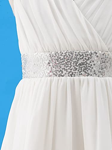 Abito da sposa in chiffon di paillettes lucido per bambina, senza maniche, scollo a V avvolto, vita alta, soffice e solido, vestito da festa con lacci