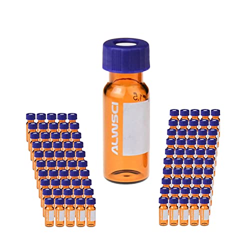ALWSCI 2ml HPLC Vials Fiale di Vetro, Laboratorio Ambra Fiale Autocampionatore, 9-425 Fiala Ambra, Tappo a Vite Blu con Foro, PTFE Blu e Bianco Silicone Septa, 100 pezzi
