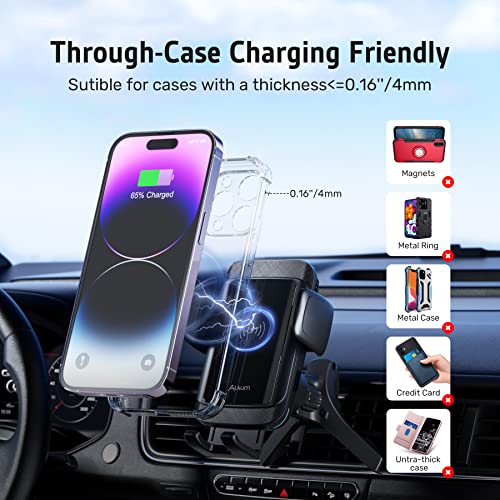 【15W Di Ricarica Wireless Veloce】 - Alxum caricatore wireless auto ha adottato una bobina indipendente aggiornata con efficienza di ricarica di alta qualità, certificato anche UKCA, CE, Qi che può supportare tutti i telefoni abilitati Qi. Uscita massima più sicura e potenza di ricarica rapida in base al telefono fino a 15 W