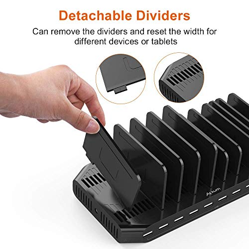 Alxum 10 Porte Stazione di ricarica per multipla cellulari con divisori staccabili, uscita 5 V 2,4 A per porta per Telefono Cellulare e tavoletta, Nero