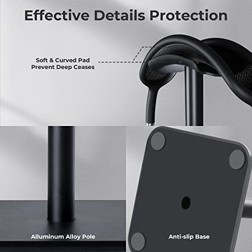[Base pesante e robusta] La nostra esclusiva base pesante di questo supporto per cuffie terrà le cuffie saldamente piantate sulla scrivania e le manterrà sicure, rendendole facilmente accessibili. La base in ferro aggiunta è abbastanza robusta da rimanere stabile anche se urtata accidentalmente.