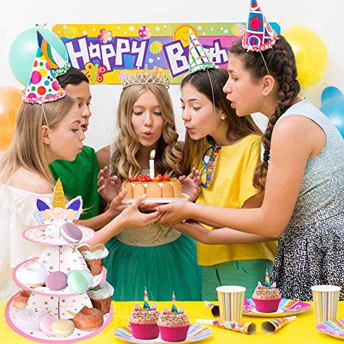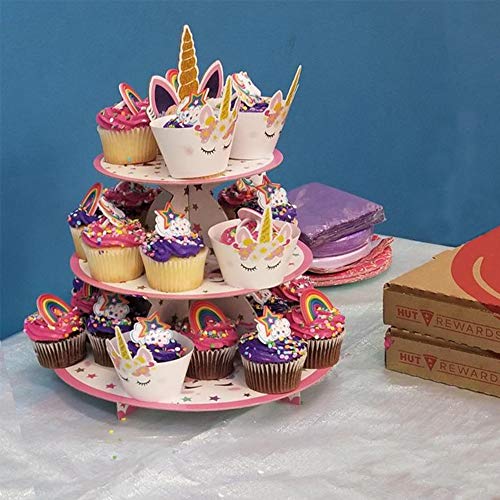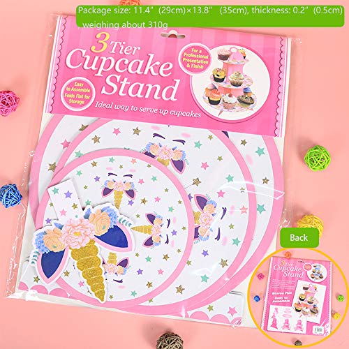 Alzata per cupcake in cartone, a 3 livelli, decorazione per feste a forma di unicorno, tè pomeridiano, supporto per dessert per bambini, rosa