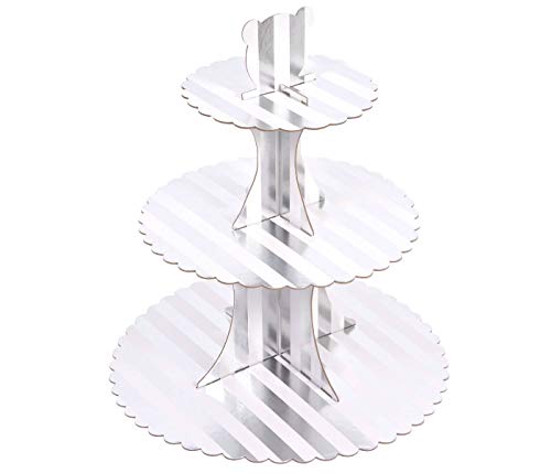 Alzata per Muffin Bomboniere Porta Cupcake a 3 Piani Alzatina per Dolci in Cartone con Strisce Argento Decorazione per Festa Battesimo Baby Shower Compleanno