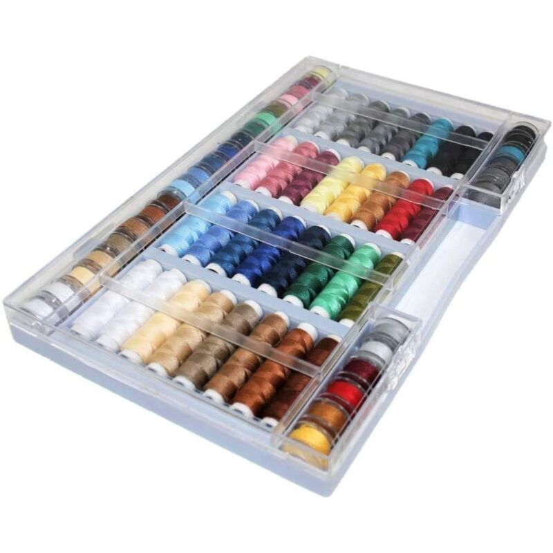 Descrizione Set di rocchetti di filo per macchina da cucire, 100% poliestere, 64 rocchetti