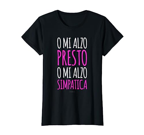 Frase Tee Shirt: O mi alzo presto o mi alzo simpatica. Magliette con scritte divertenti e frasi originali, ironiche e simpatiche. Maglie per donna, ragazza e bambina. Marca LUMOMIX.
