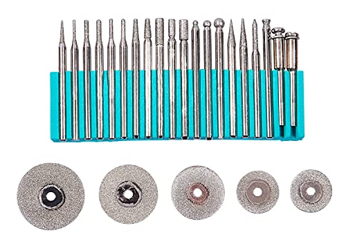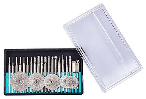 Il set include 18 pezzi punto di diamante, 5 pezzi mini ruote diamantate con 2 pezzi mandrino da 1/8"